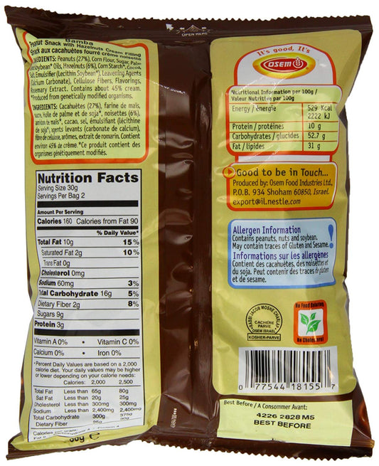 Bamba Peanut Butter Snacks All Natural Peanut Butter Corn Puff Snack (Pack of 12 1oz Bags)