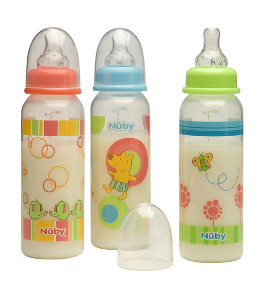Baby Feeding - Nuby - 4oz Clear Printed Round Bottles (1 Only) Vary Color 1161