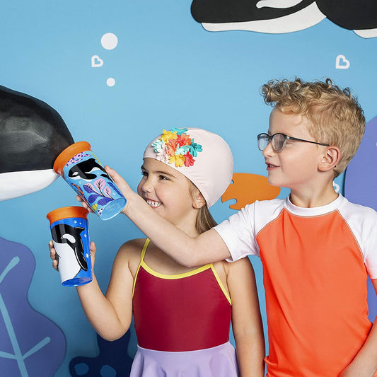 Munchkin Miracle 360 Wild Love Sippy Cup, 6 Ounce, 2 Pack, Polar Bear/Orca