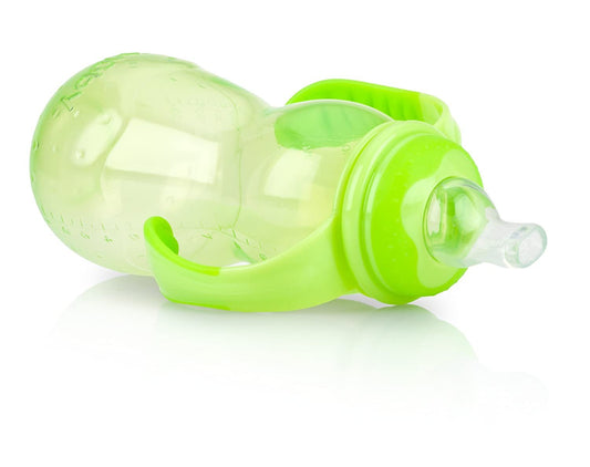 Nuby 3-Stage Wide Neck No Spill Bottle with Handles and Non-Drip Juice Spout, 3 Months, 8 Ounce, Green