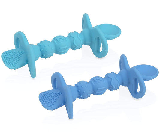 Nuby Dipeez 2 in 1 Silicone Spoons/Dipper, 2pk, Blue/Aqua