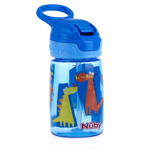 Nuby Kids No Spill Flip-it Adventure and Travel Sticker Water Bottle with Soft Silicone Straw: 18+ Months, 14oz / 420ml