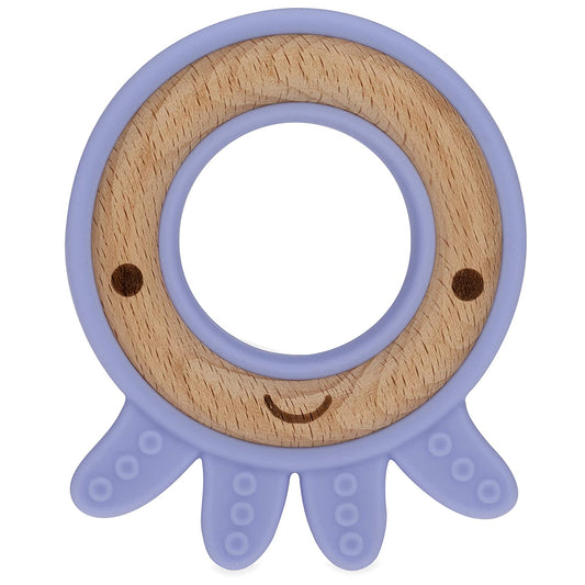 Nuby Natural Wood & Silicone Teether: Octopus, 3M+, Purple (80804)