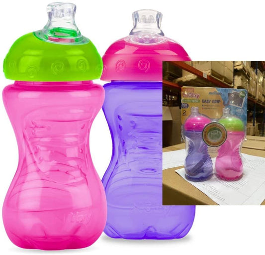 Nuby No-Spill Super Spout Easy Grip Cup, 10 Ounce, 6 Month (Pink and Purple)