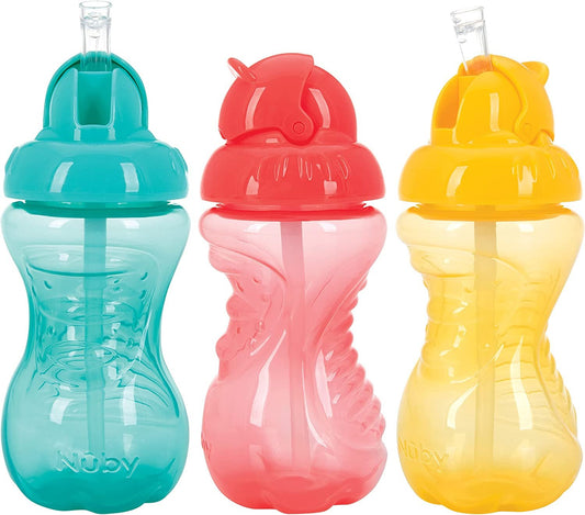 Nuby No-Spill Flip-It Cup, 10 Ounce, 3 Count Colors May Vary