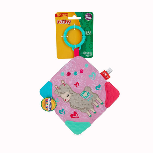 Nuby Plush Llama Cuddle & Chew Teething Blankie with Squeaker & Connector Clip: 0 M +, Llama, Multi