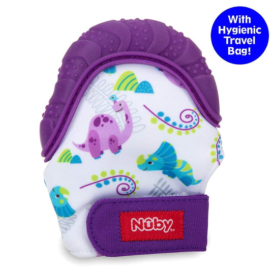 Nuby Purple Dino Teething Mitten with Travel Bag