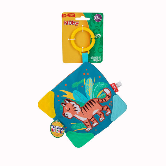 Nuby Plush Tiger Cuddle & Chew Teething Blankie with Squeaker & Connector Clip: 0 M +, Tiger, Multi