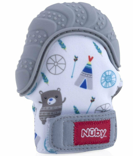 Nuby Soothing Teething Mitten with Hygienic Travel Bag Grey Teethers Feeding