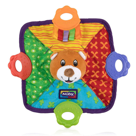 Nuby Teething Blankie Characters May Vary, Red/Yellow/Green/Orange/Blue, 1 Count