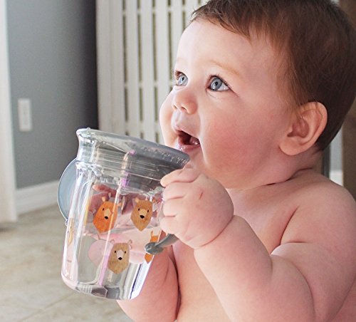 Nuby Tritan No Spill 2 Handle 360 Degree Printed Wonder Cup (Gray rain print, Red penguin, Aqua dinosaurs