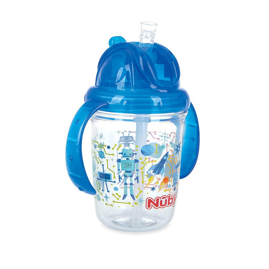 Nuby Tritan 2-Handle No-Spill Flip-it Fat Straw Printed Cup - 8oz/ 240 ml, 12+ Months