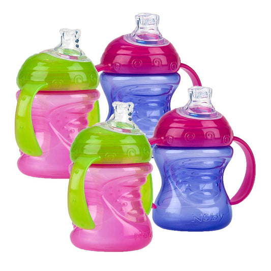 Nuby Two-Handle No-Spill Super Spout Grip N' Sip Cups, 4 Count