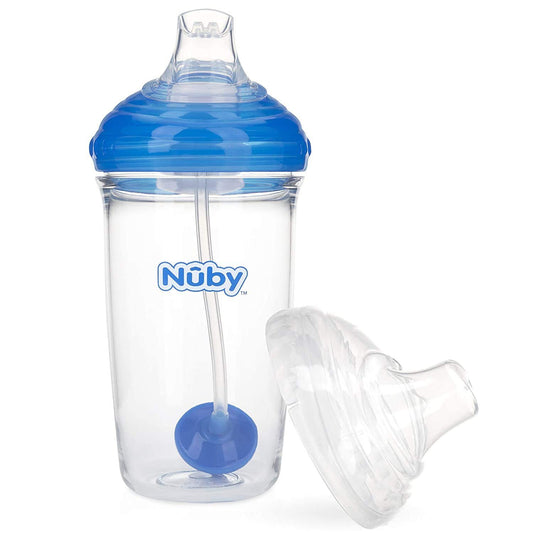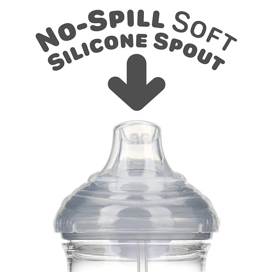 Nuby Tritan No-Spill Trainer Cup with Silicone Spout & 360 Weighted Straw with Hygienic Cover