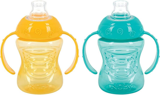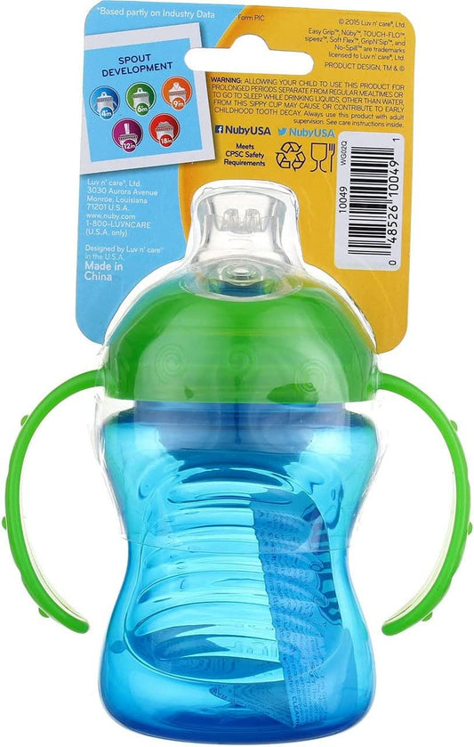 Nuby Two-Handle No-Spill Super Spout Grip N' Sip Cups, 8 Ounce (2 Count, Blue, Green)