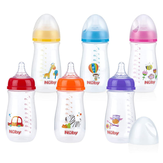 Nuby Wide Neck Bottle with Anti-Colic Air System, Colors/Prints May Vary, 1pk