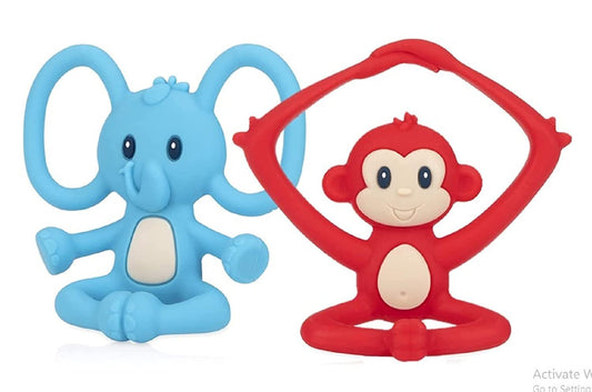 Nuby Yogis All Silicone Soothing Teether, Elephant/Monkey