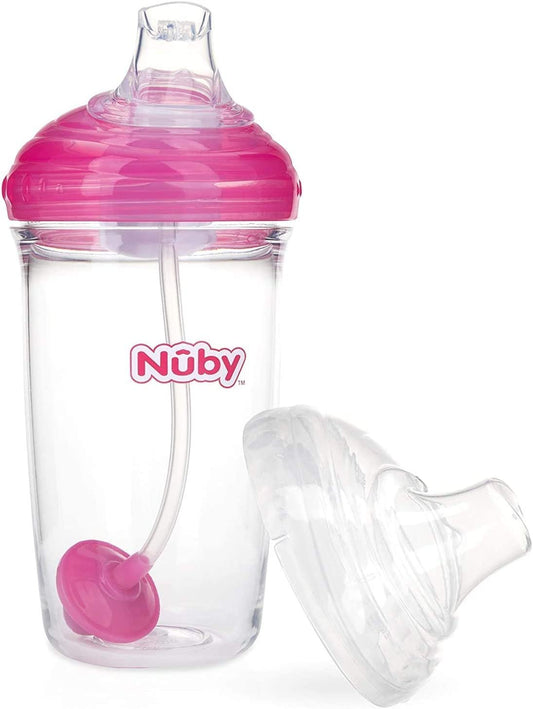 Title: Nuby Tritan No-Spill Trainer Cup with Silicone Spout & 360 Weighted Straw with Hygienic Cover, 2 Pack
