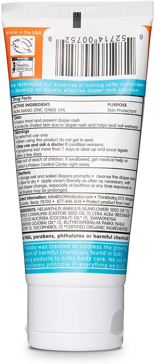 Thinkbaby Diaper Rash Ointment | Baby Rash Relief, Applies and Absorbs Easily | 14% Zinc Oxide, Free of Parabens, Phthalates, Dioxane and Toxic Chemicals - 3oz