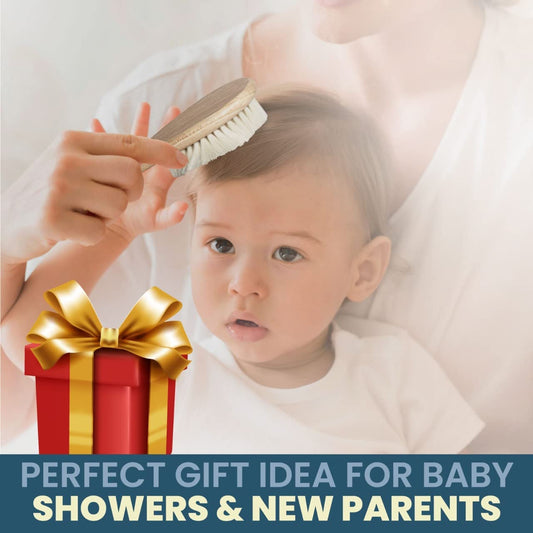 ToeZee Wooden Baby Hair Brush Set | Infant, Toddler Baby Hair Products Including Soft Goat Hair Brush for Cradle Cap, Bamboo Toddler Hair Brush, Hairbrush Comb for Scalp Grooming with Travel Bag
