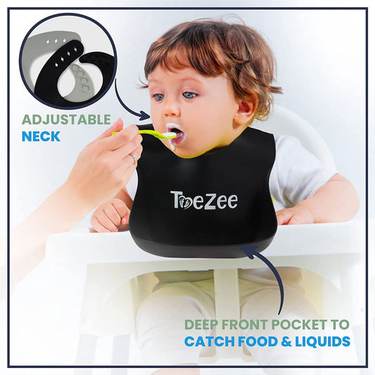 ToeZee Silicone Baby Bibs - Food Grade, BPA Free Material | Easy to Wipe and Clean | Adjustable Size - 2 Pack