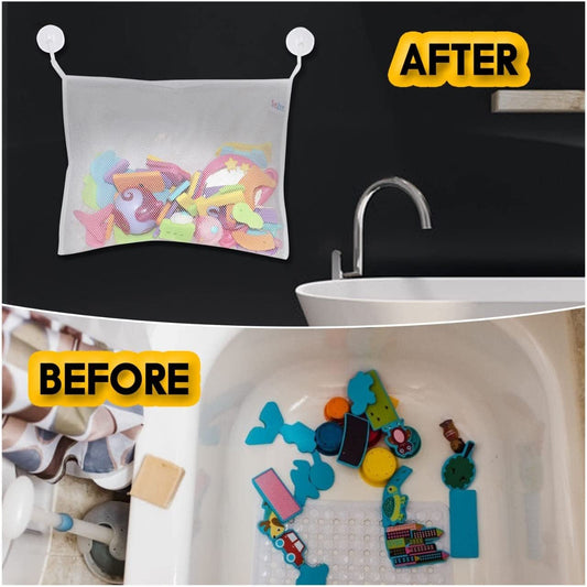 ToeZee Bath Toy Organizer Bag with Suction Cups Mesh Toys Organizer Bag Keeps All of Your Toddlers Favorite Bath Toys in One Convenient Location Bath Toys Bag Easily Sticks to The Wall