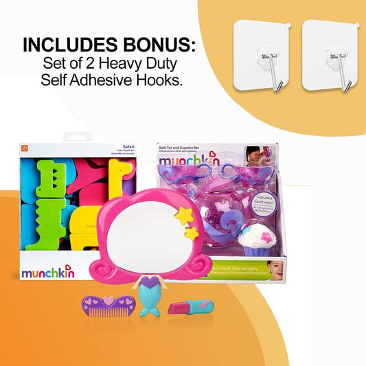 ToeZee Bath Toys for Boys & Girls Bathtub Water Toyset - Nuby Mermaid Mirror Bath Toy Set, Munchkin Bath Tea and Cupcake Set, 33-Piece Safari Animals Bath Toy Set & Bath Toy Organizer - Suction Cups