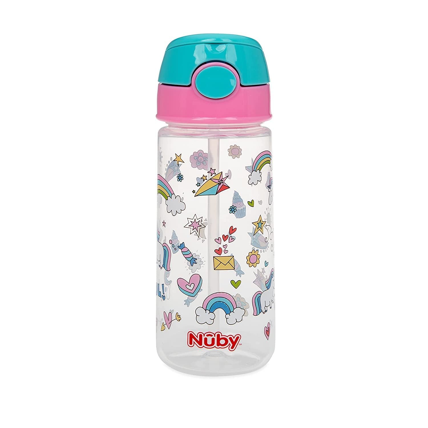 2-Pack Nuby Kid’s Printed Flip-it Active Water Bottle with Push Button Cap and Soft Straw - 18oz / 540ml, 18+ Months, 2-Pack