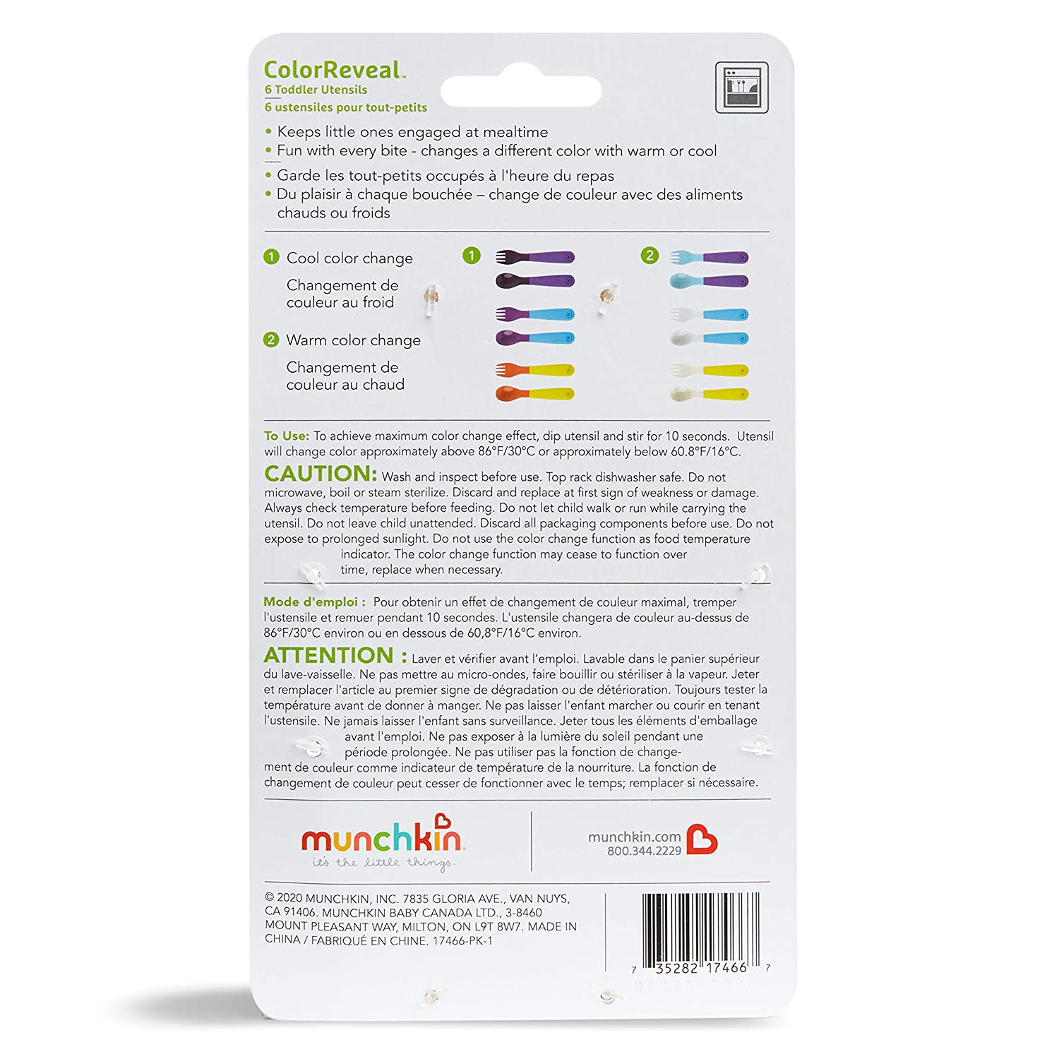- Set of 6 fun color changing utensils for kids. Includes 3 forks and 3 spoons.