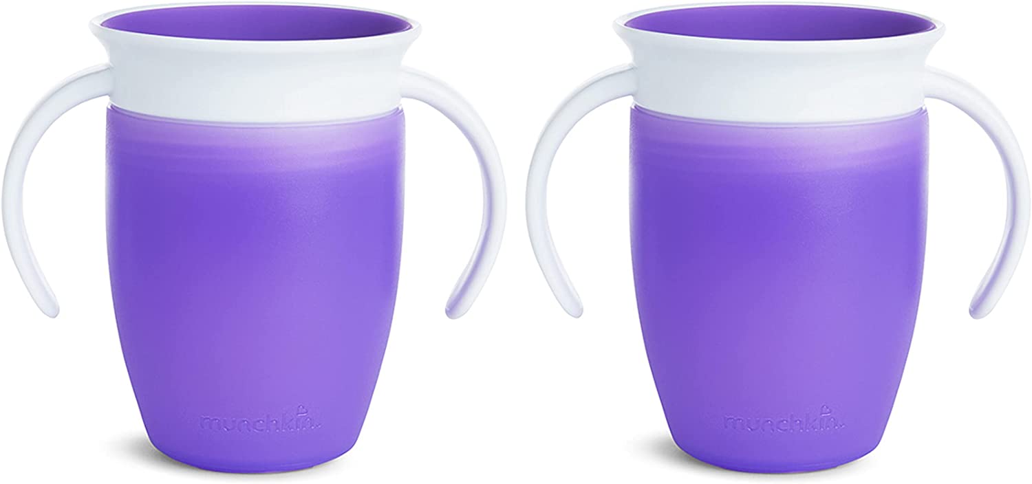 Let's face it: toddlers are a messy bunch, especially when first navigating Sippy cups. Now imagine a world in which drinks didn't spill at all not in your diaper bag, not on your furniture, and not even onto your eagerness to learn child. No, it's not a miracle, exactly it's munchkin's miracle 360˚ cup. The first Sippy cup invented with both parents and kids in mind, the miracle 360˚ trainer cup eliminates messes and supports kids' dental health all at once. Drinking from anywhere around the rim, like a regular cup, helps support normal muscle development in a child's mouth. And with no extra spouts, straws or pieces, the miracle 360˚ cup is easy to use and even easier to clean. We'll say cheers to that.6 plus months. Caution to prevent burns, do not microwave or use with hot liquids. Do not let the child walk or run while carrying the cup. Do not allow the child to play, bite or chew on the valve. Do not use with carbonated beverages or pulpy juices. By Munchkin.