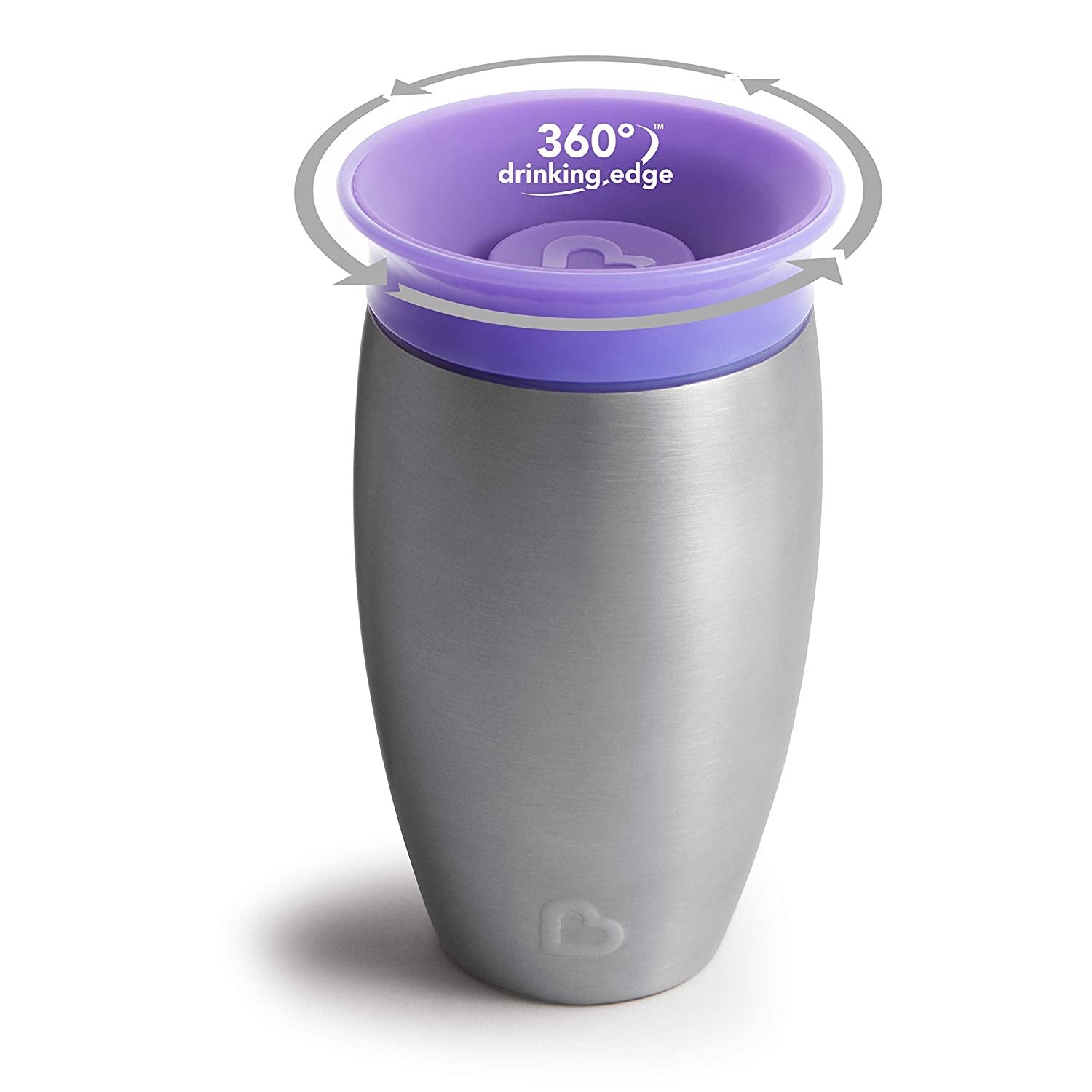 Munchkin Miracle stainless steel 360 Degree sippy cup is here to "steel" Your heart when it comes to sippy cups. Let's face it: toddlers are a messy bunch, especially when first navigating sippy cups. Now imagine a world in which drinks didn't spill at all-no, it's not a miracle- it's Munchkin Miracle 360 Degree cup. This premium double walled, vacuum sealed stainless steel sippy cup keeps liquids cool for fresh and cold toddler drinks all day. Light-weight stainless steel material is extremely durable and double wall design won't sweat or get hands cold. Patented 360 Degree rim eliminates messes and supports kids' Dental health All at once because drinking from anywhere around the rim, like a regular cup, helps support normal muscle development in a child's mouth. Also includes matching cup lid to keep drinking edge clean on-the go. With no extra spouts, straws or pieces, the Miracle 360 Degree cup is easy to use and even easier to clean. We'll say Cheers to that! Suitable for children 12 months and up.