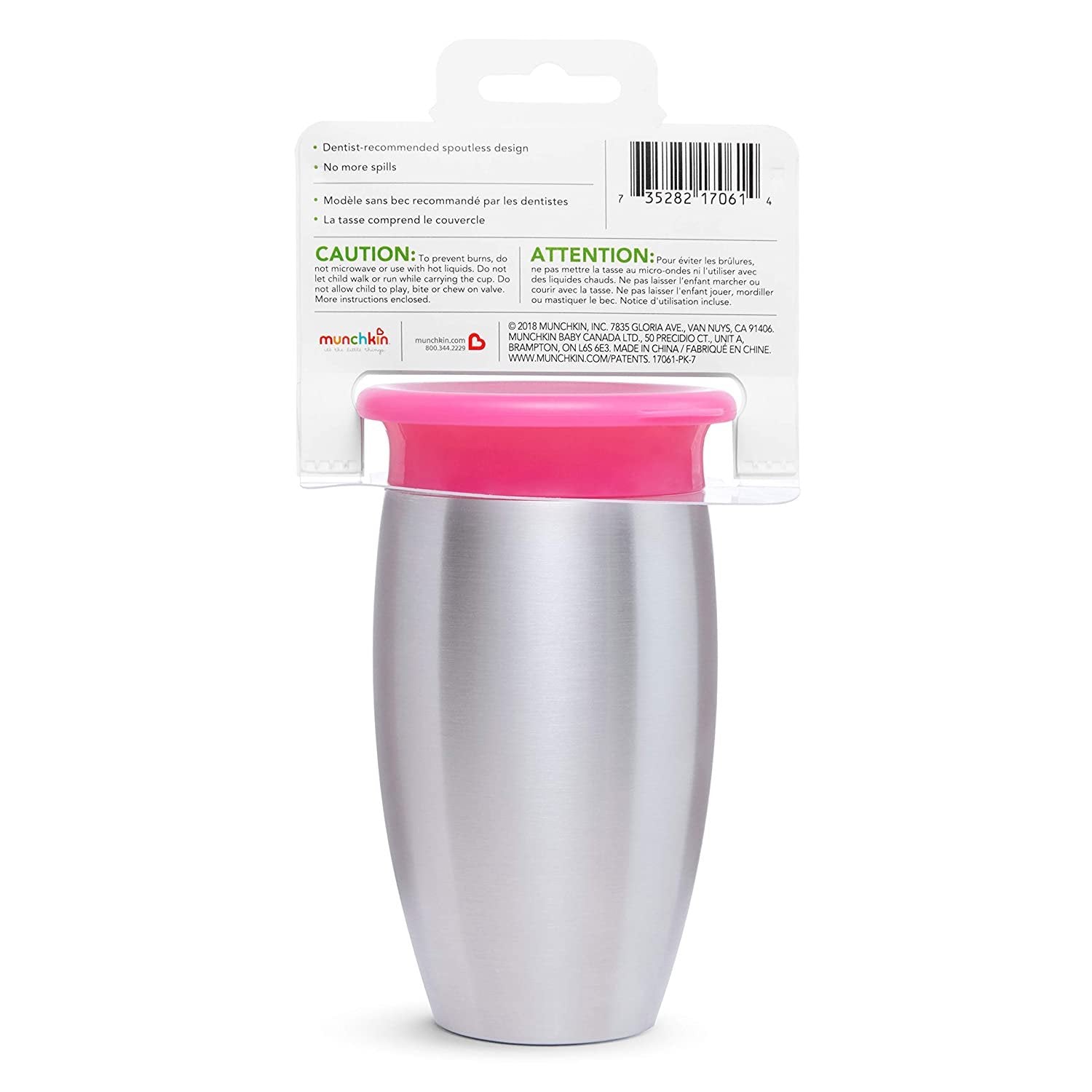 Munchkin Stainless Steel Miracle 360 10oz Sippy Cup, Pink