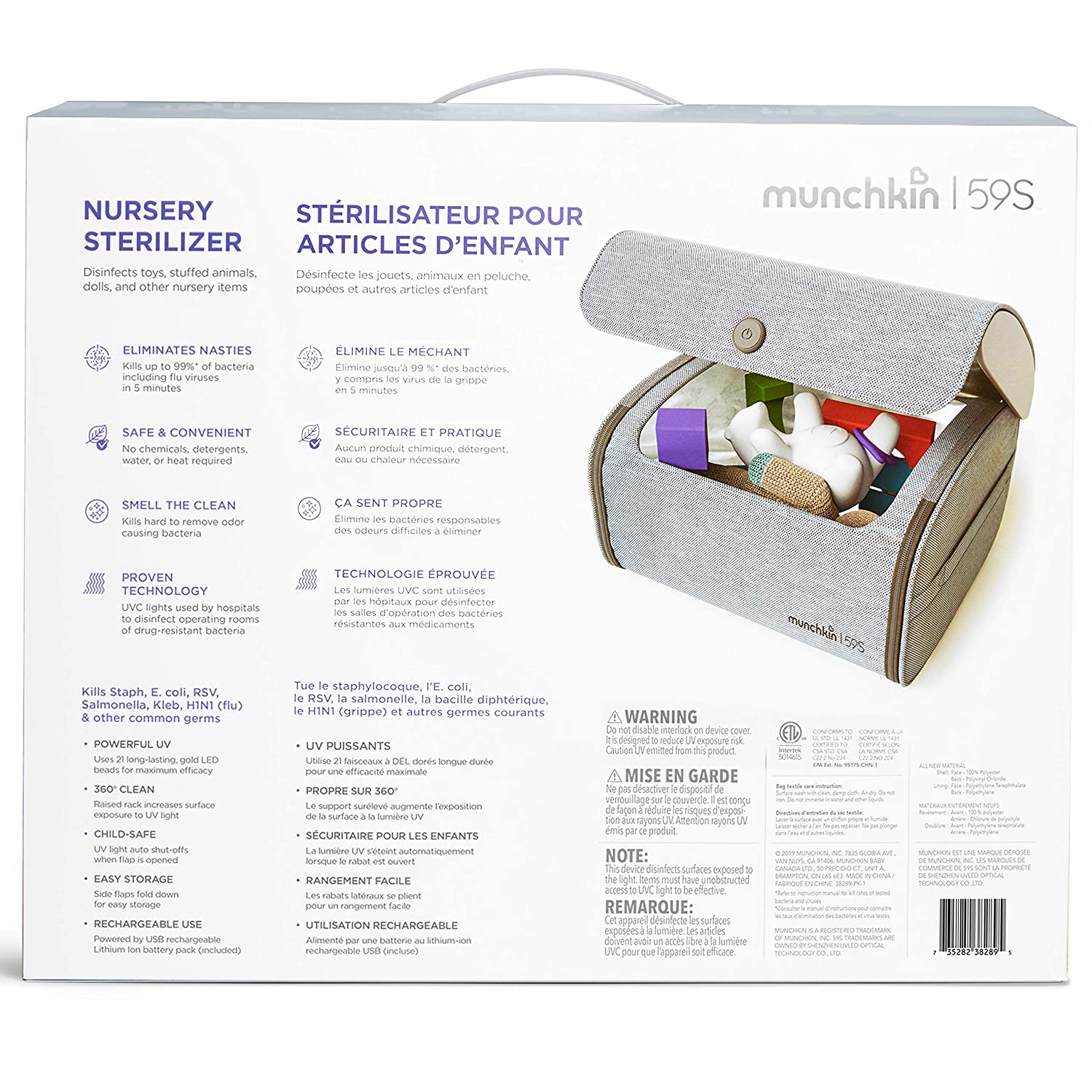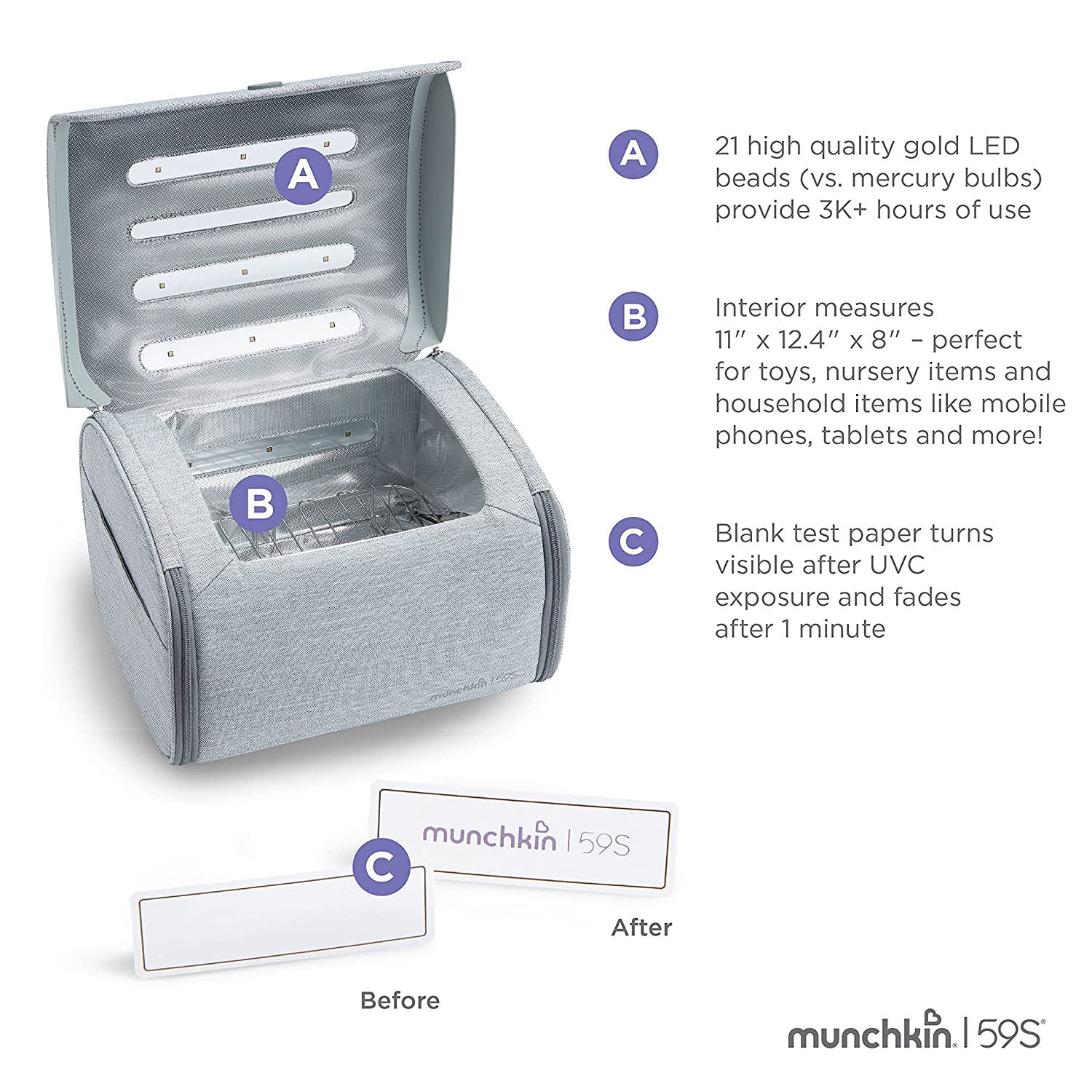 Munchkin UV Sterilizer and Sanitizer Bag, Eliminates up to 99% of Germs, Viruses & Bacteria, 21 UV-C LEDs, Cleaner for Nursery and Toy Baby Products