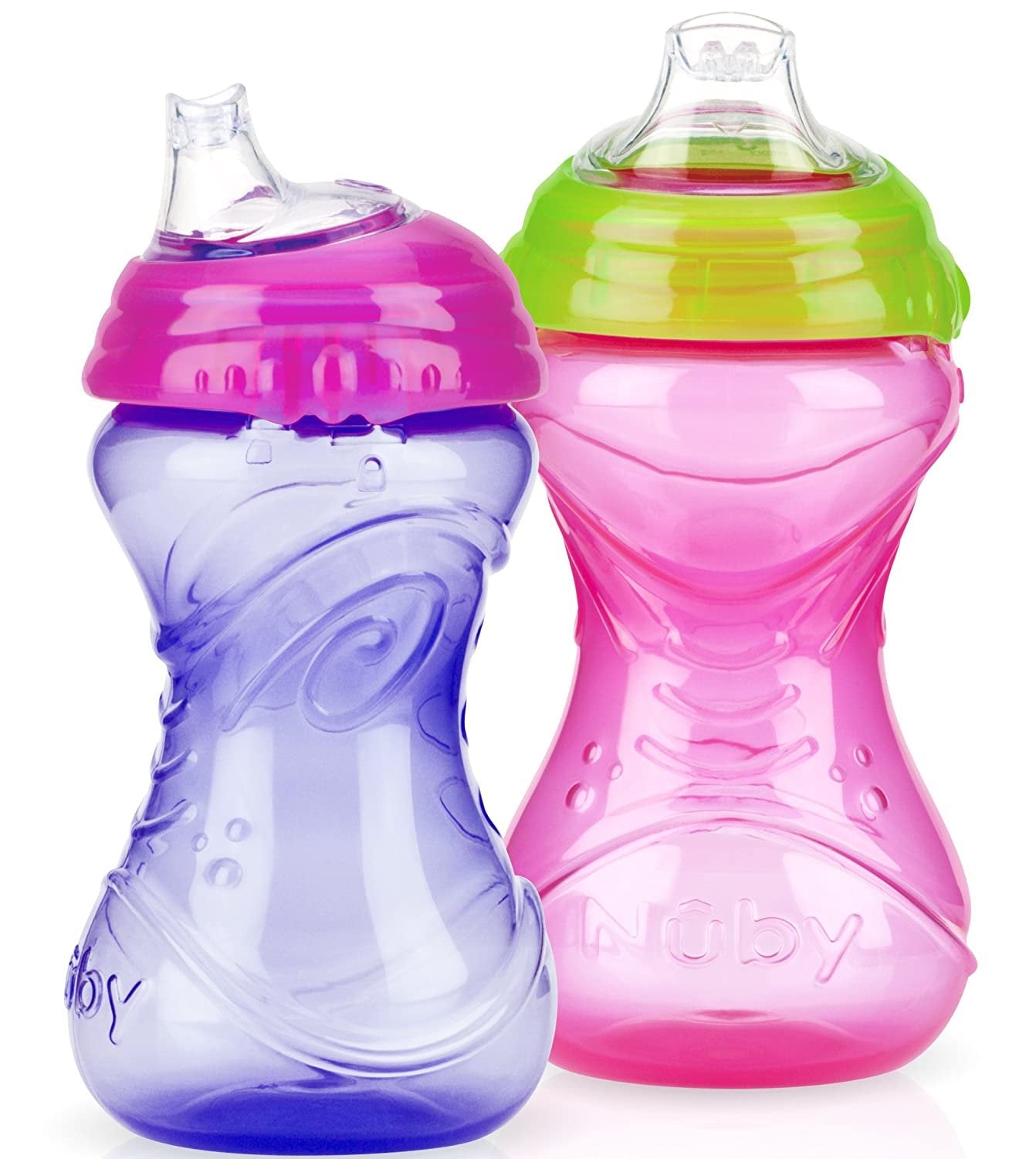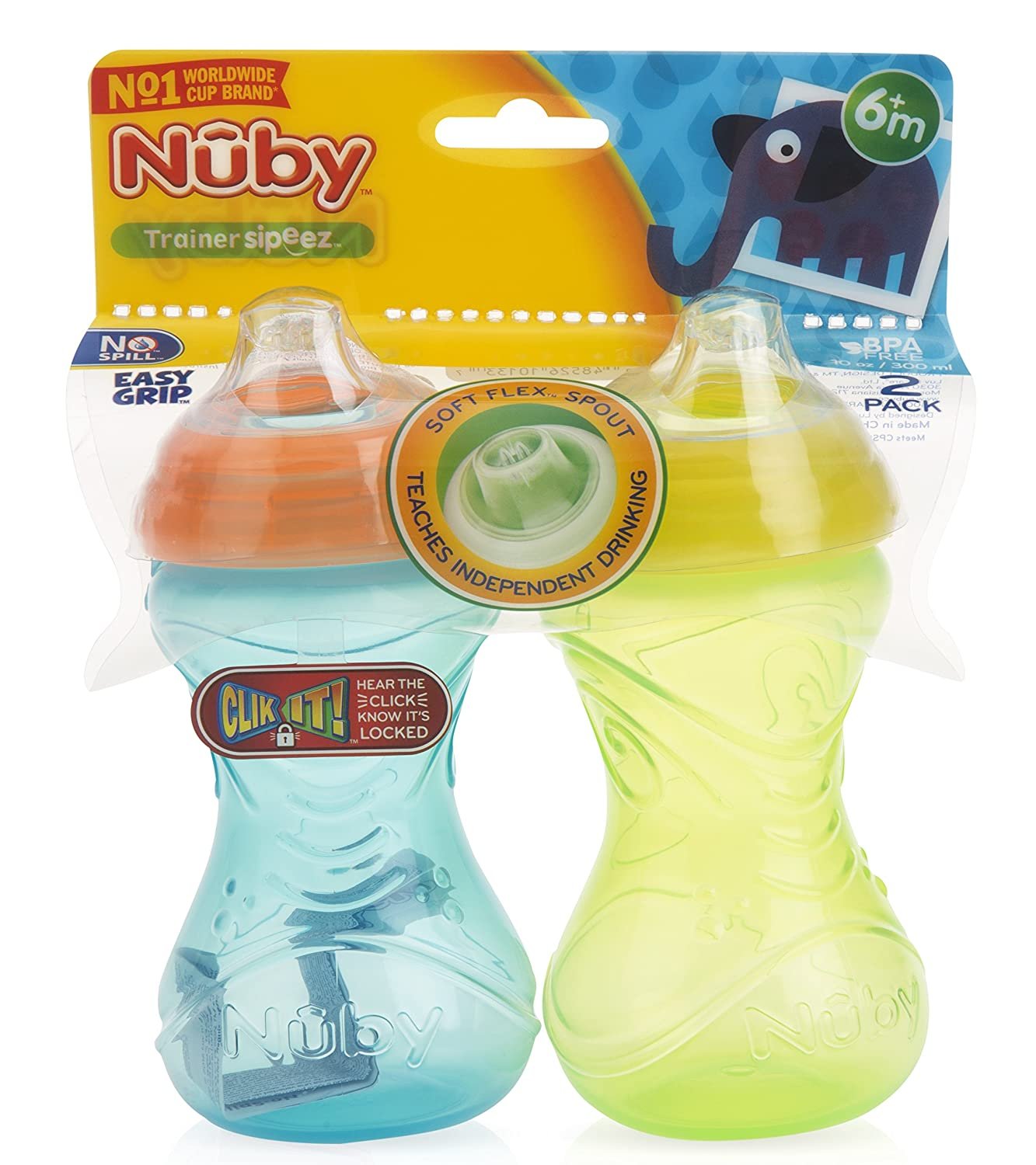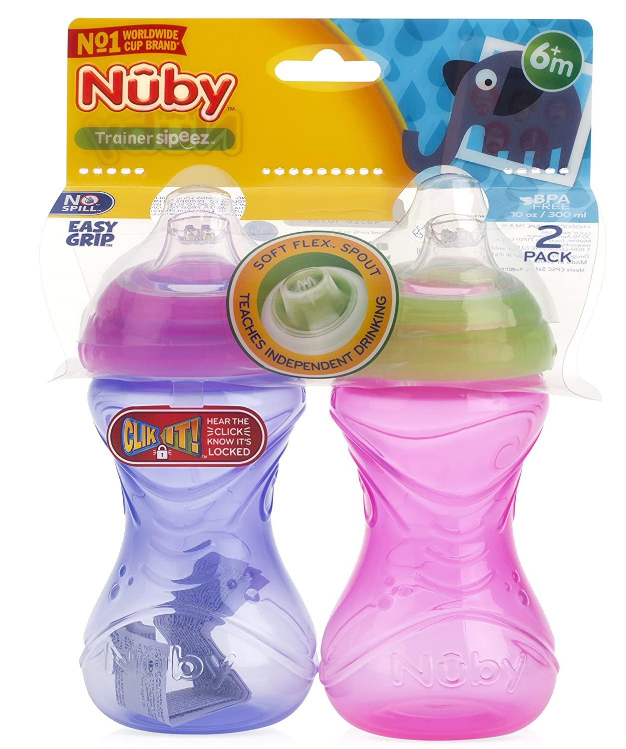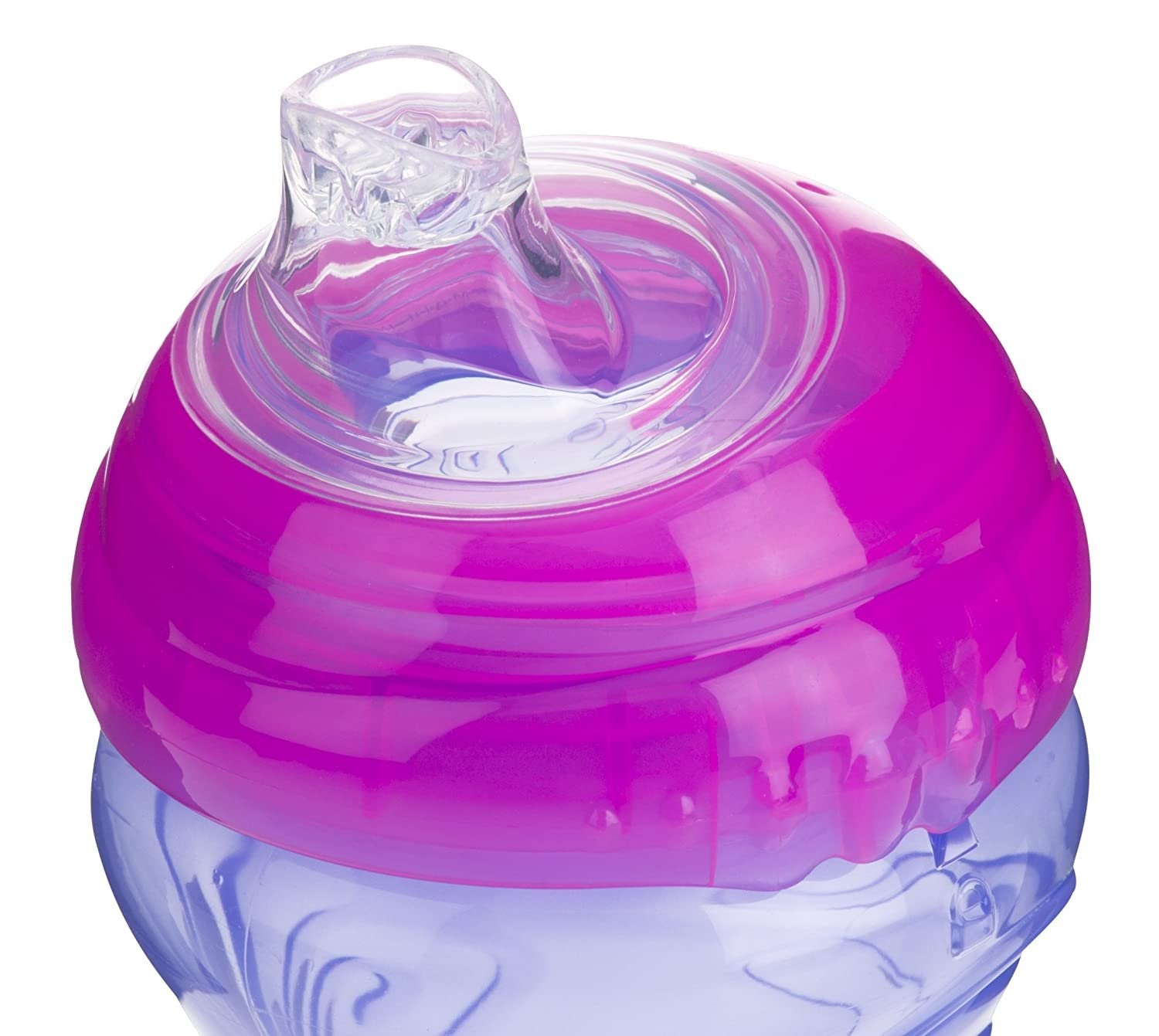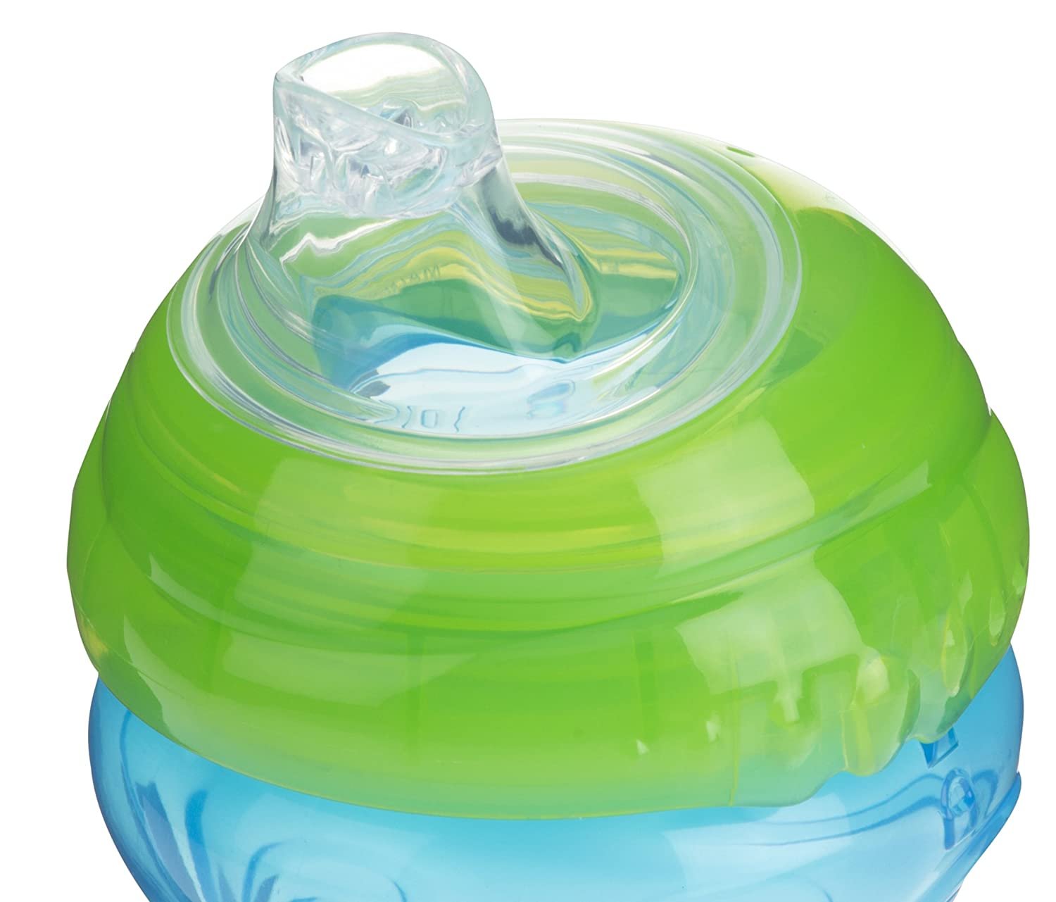 - Super Soft No-Spill spout and Touch-Flo valve only allows liquids to flow when baby applies pressure. Unique Easy Grip contour shape easily fits in baby's hands